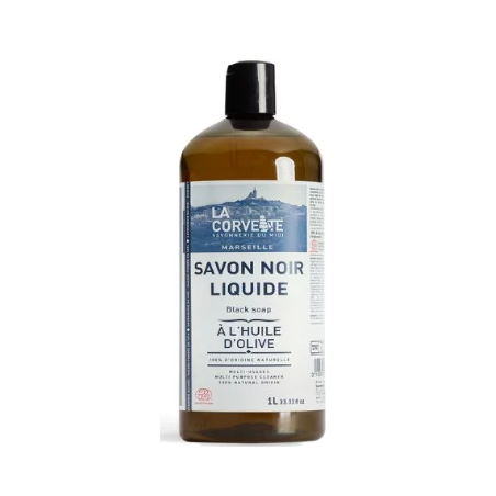 Savon noir liquide Olive : Il nettoie et nourrit en profondeur tous types de surfaces : tomette, terre cuite, carrelage, linos, mur peint, sanitaire, céramique, cuir, vitres...1L